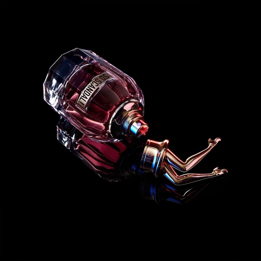 - يأتي العطر في زجاجة جذابة تتبع تصميم مجموعة Scandal الشهيرة، مع غطاء يأخذ شكل ساقين أنثويتين مقلوبتين، مما يرمز إلى الجرأة والجاذبية.
